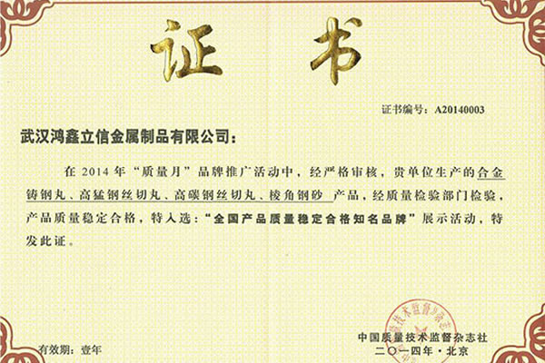 公司所有產(chǎn)品均通過ISO9001 **質(zhì)量認(rèn)證,2014年更獲得了第三屆中國金屬磨料行業(yè)具有影響力品牌-華尊獎(jiǎng)